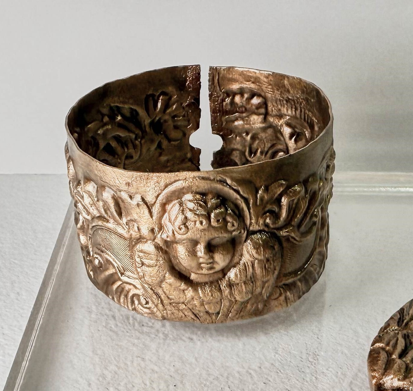 Изделие в виде кольца с выпуклым изображением Херувима. Возможно, это обоймица от предмета церковной утвари. Вероятно, от жезла или посоха.